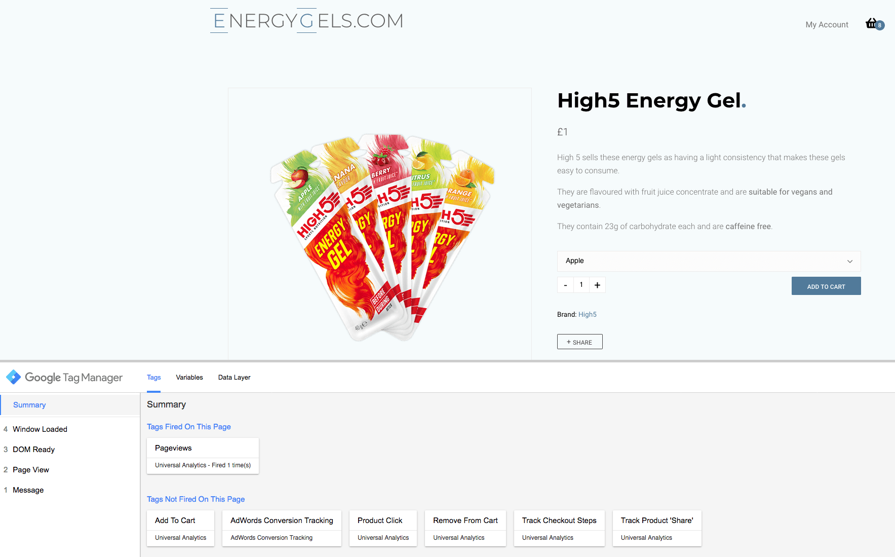 I have used GTM to implement complex analytical tracking on EnergyGels.com where you can buy energy gels.